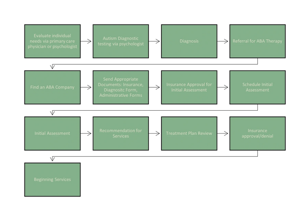 *Please note that this is not an exact structure for every patient. Each patient is treated individually and the process can differ from family to family. These flowcharts serve as a basic guide to understanding the process of beginning ABA therapy with River Rock Behavioral Therapy, LLC.